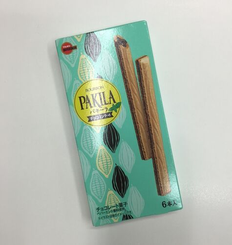 ブルボンパキーラチョコミント味6本6/27発売1本38kcalミント香るチョコレートに、クランチクレープとパフを混ぜて、ウエハースでサンドしました。やー、すっかりチョコミント、定着してまいりましたな。では、いただきますよ。1本、ズッシリ。持った感じは…